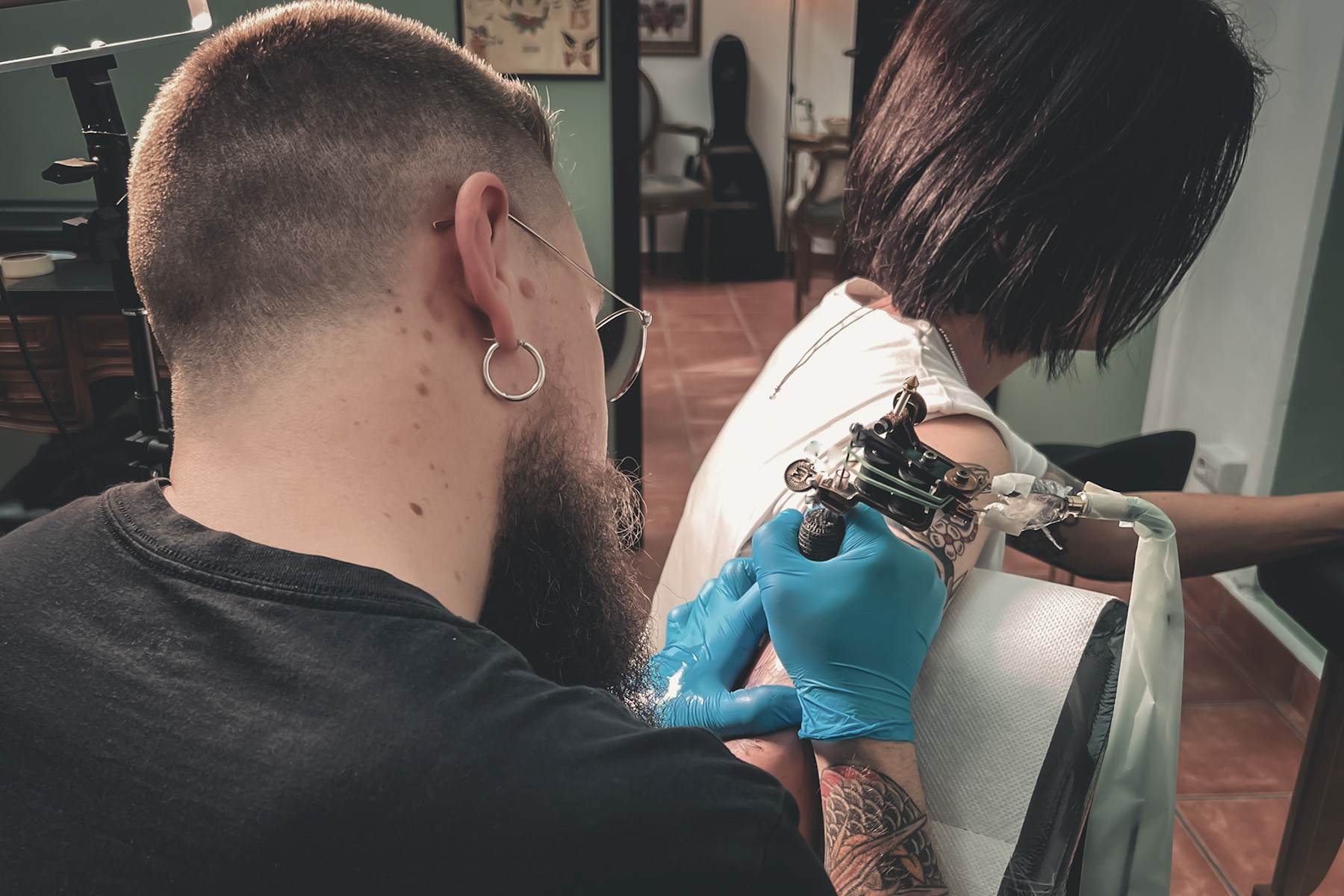 Il suo soffitto a 6 metri di altezza offre una visuale del cielo, per un ambiente luminoso e rilassante. Tutto al Dear Lover tattoo shop è stato curato per mantenere quel tono vintage autentico, con la cura e la spontaneità di chi ama il proprio mestiere.
